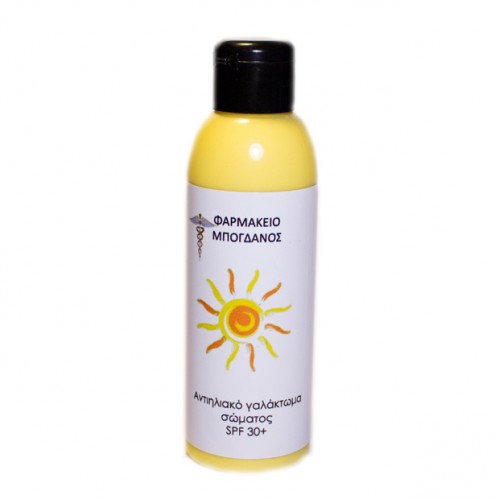 Αντηλιακό γαλάκτωμα σώματος με φυσικά φίλτρα και βιταμίνη Ε για υψηλή προστασία απο την ηλιακή ακτινοβολία. Περιέχει βιτάμινη Ε, έχει ισχυρή αντιοειΙδωτική δράση και εμποδίζει την δημιουργία των ελεύθερων ριζών. Αντηλιακό ευρέως φάσματος ενάντια στην υπεριώδη ακτινοβολία UVA -UVB..O πλουσιος συνδυασμος ελαιωνπου πριεχει καροτελαιο λαδι Jojoba gold σιτελαιο , αμυγδαλελαιο και βουτυρο κακαο συνιετουν ενα προιον που προσφερει προστασια απαλοτητα και ελαστικοτατηταστο δερμα κατα την διαρκεια της εκθεσης του στον ηλιομεσα στην πολη αλλα και στην παραλια.