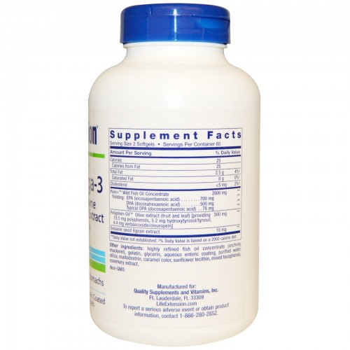 Το συμπλήρωμα αυτό είναι το μόνο που περιέχει την ευεργετική "τριάδα" ιχθυελαίου, σησαμελαίου και ελαιόλαδου, ενώ περιέχει δύο φορές περισσότερο ΕΡΑ και DHA από τις συνηθισμένες κάψουλες ιχθυελαίων.Δεν περιέχει - σύμφωνα με τη διεθνή επιστημονική εταιρεία ιχθυελαίων - υδράργυρο, αρσενικό, μόλυβδο, κάδμιο και λοιπά τοξικά μέταλλα. Επίσης, πλήροι - ή ακόμη και ξεπερνά - τα αυστηρά διεθνή κριτήρια για PCB's, διοξίνες και άλλες βλαβερές ουσίες.